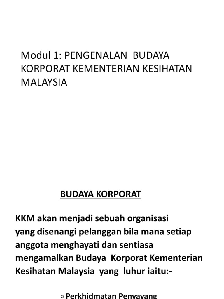 Maybe you would like to learn more about one of these? Budaya korporat kementerian kesihatan malaysia. Check spelling or type a new query. We did not find results for: